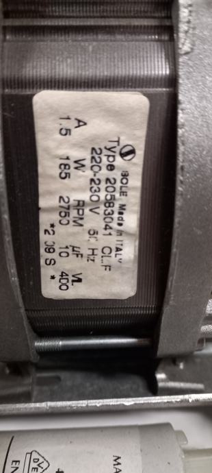 Elektromotor z 2 veternice, 220v, 185w, 2750RPM, z jermenico za pogon.