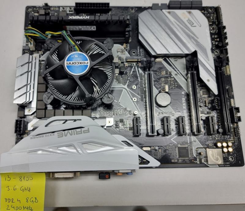 Prodam brezhibno delujočo matično ploščo ASUS Prime Z370-A + CPU Intel i3 - 8100 3.6 GHz + RAM 8 GB DDR4-2400 + hladilnik z ventilatorjem.