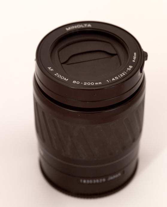 Prodam zumobjektiv Minolta AF 80-200 mm f/4,5-5,6 z bajonetom Sony/Minolta A. Priloženi je zadnji pokrovček (sprednji je vgrajen v objektiv).
