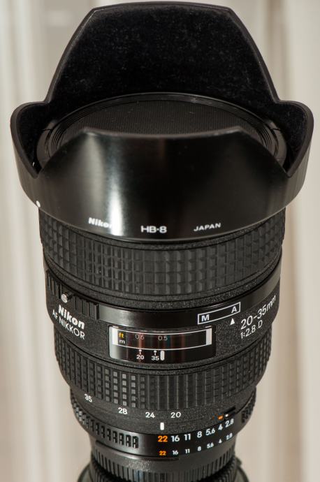 Nikon AF NIKKOR 20-35mm f2,8D ... Odličen širokokotni all around Nikkorjev objektiv s stalno zaslonko F2,8 primeren za FX - full frame senzor. Kvalitetna leča in ostra leča po celem področju bo zadovoljila še tako zahtevnega fotografa. Lepe barve, hiter in zanesljiv fokus, brez sledov uporabe - MADE IN JAPAN!