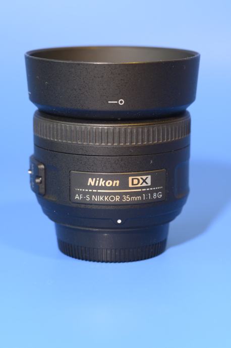 Prodam Nikon objektiv AF-S Nikkor 35 mm f/1,8 G DX. Objektiv je brezhiben, zelo malo rabljen, optika popolna. Primeren je za APS-C fotoaparate. Ima oba pokrovčka in sončno zaslonko.