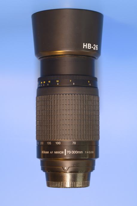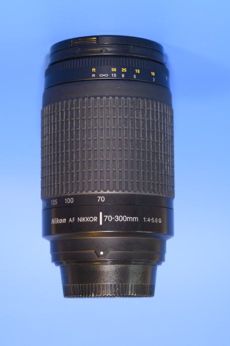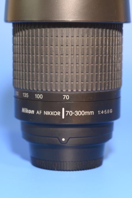 Dobro ohranjen, zelo malo rabljen objektiv Nikkor 70-300 mm f/4-5,6 G prodam. Leče so brez kakršnekoli praske. Opremljen je z obema pokrovčkoma in sončno zaslonko.