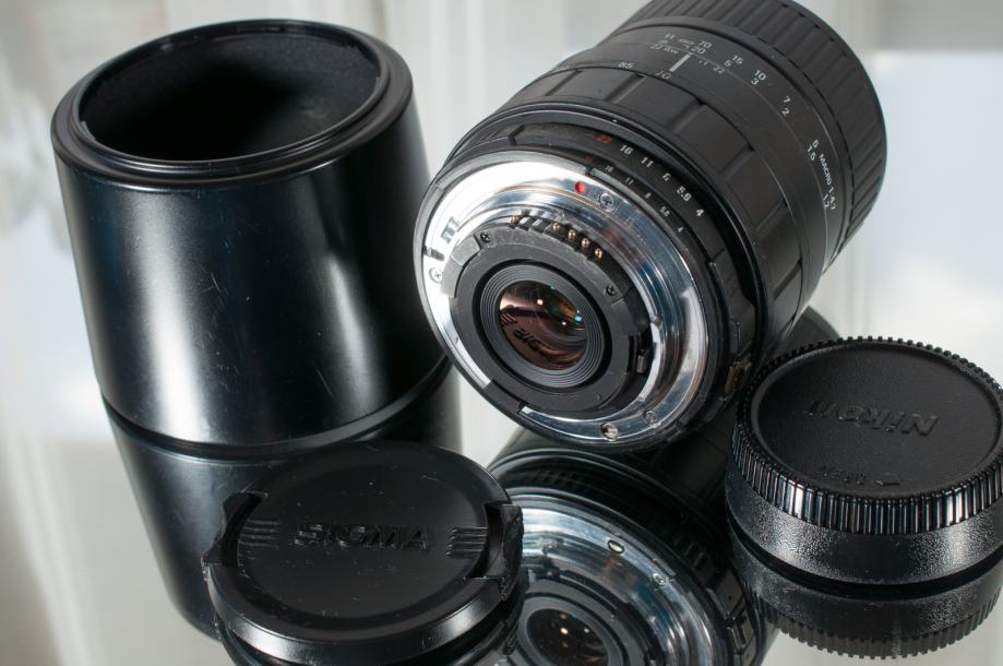 SIGMA ZOOM 70-210mm F4-5,6 D ... Odlično ohranjen zoom objektiv za približanje motiva (full frame). Praktičen, ker ni prevelik za v fotografsko torbo. Primeren tudi za fotkanje portretov ali povsod kjer je univerzalni objektiv prekratek oz.preširok. MADE IN JAPAN!