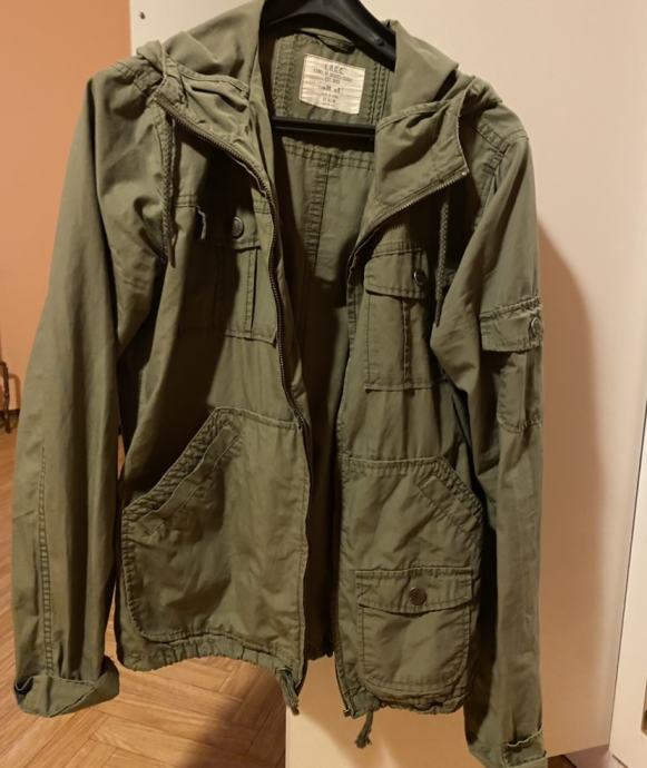 Prodam malo rabljeno jakno H&M, v vojaski barvi, z zepkom na rokavu in kapuco, visoko zapenjanje.. Jakna je univerzalna, torej vedno IN…