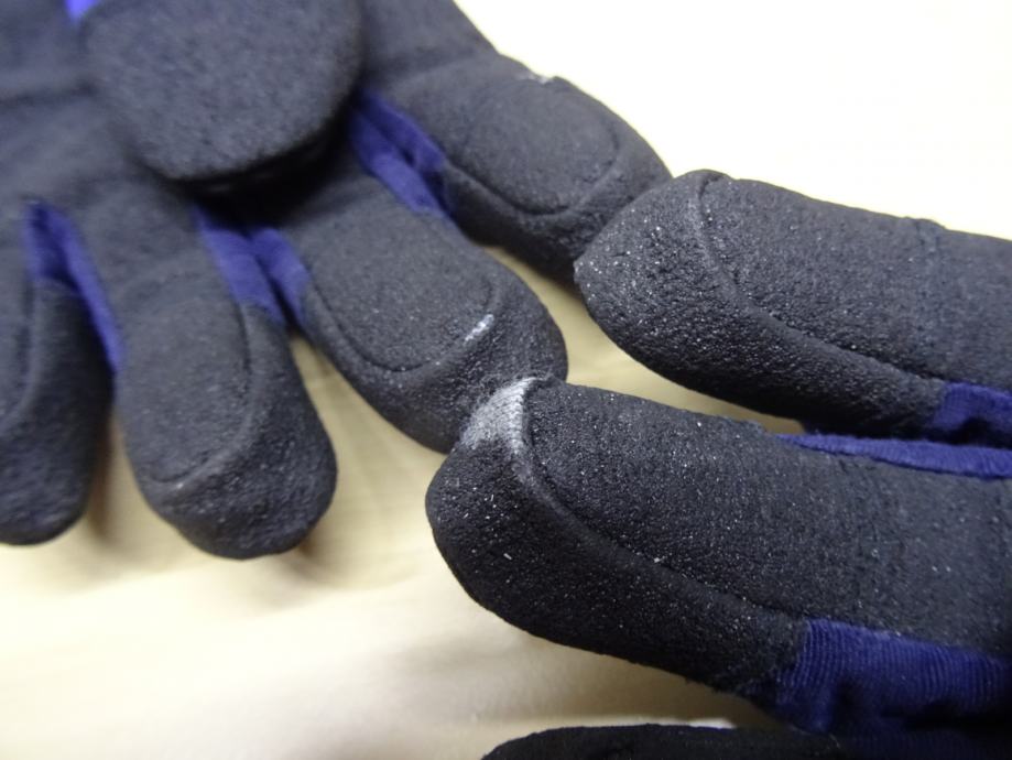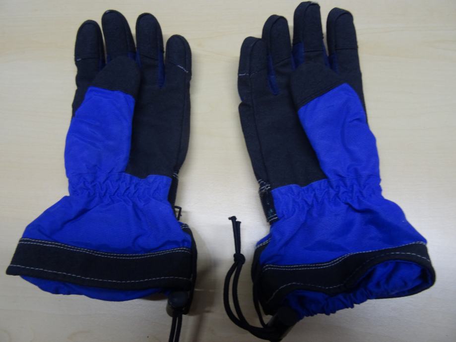 fantovske rokavice MartinArts, velikost 6 1/2, za bordanje, modro črne barve, ojačane na prstih in dlaneh, zatezna vrvica, na eni rokavici manjša poškodba (slika)