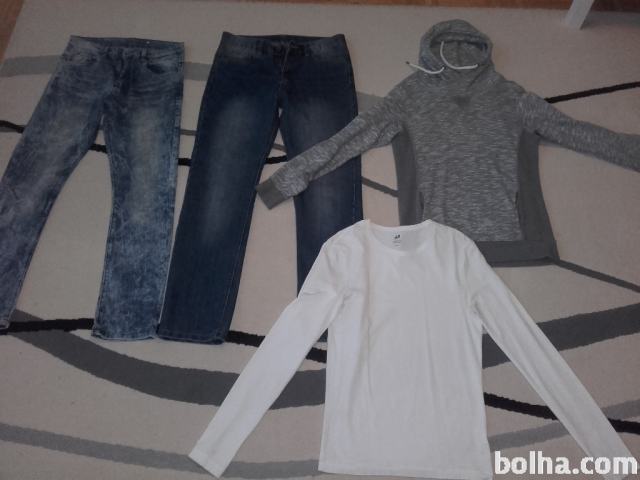Prodam dvoje kavbojke(velikost 164 in 170),belo majico(HM) ,pulover s kapuco za fanta v kompletu ali posamezno( 10 e)