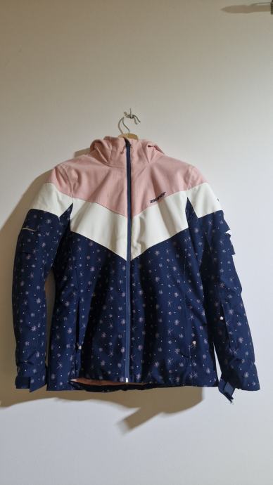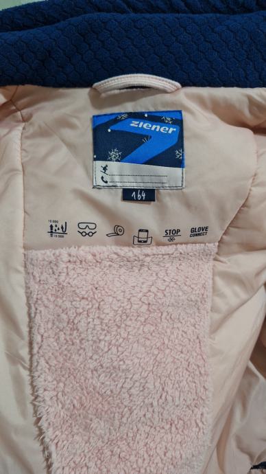 Dekliški rabljen kombinezon. Hlače so številke 152, zgornji del pa 164. Zgornji del ima v notranjosti žep za telefon, na rokavu žep za kartico in ob straneh 2 žepa-vsakega na eni strani ter kapuco.