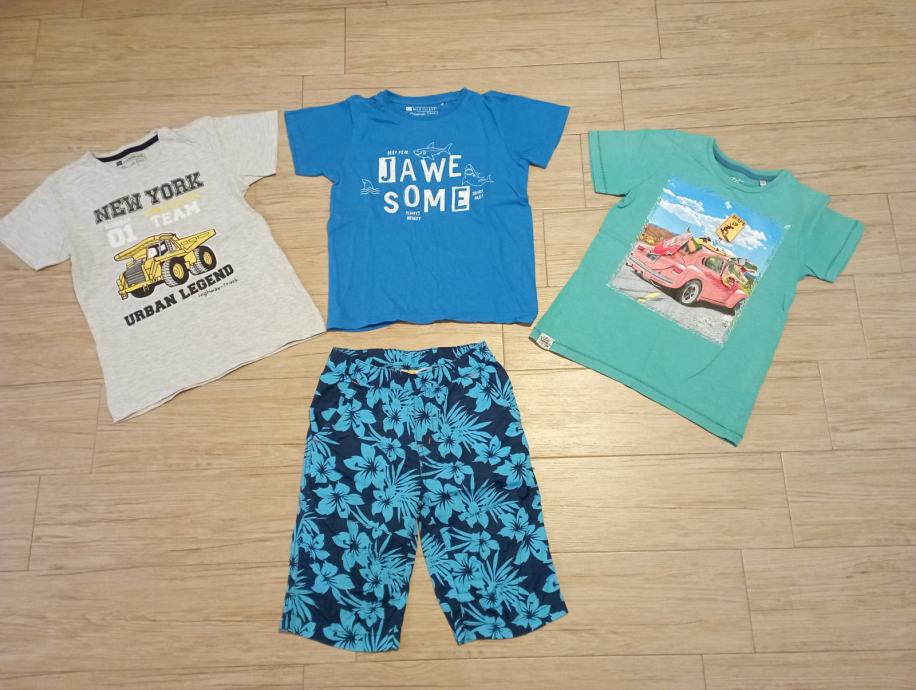 Prodam lepo ohranjena oblačila za fantka. Troje kratke hlače, ki so malce slabše ohranjen podarim. Komplet Spiderman je v velikosti 134, vendar zelo majhen in ustreza številki 128. 1€/kos.