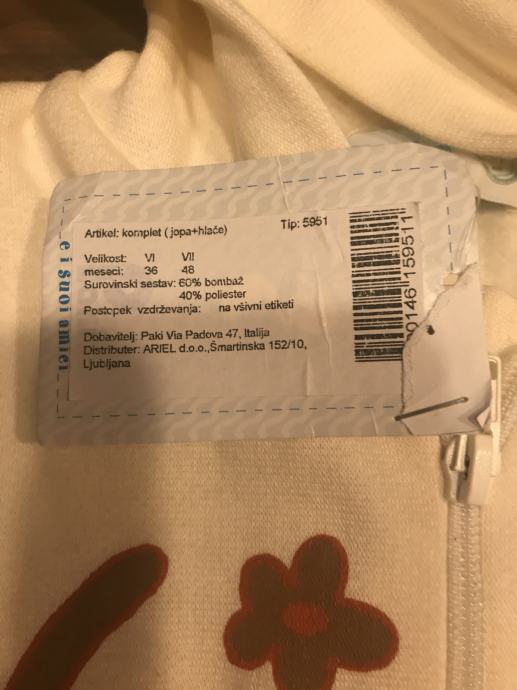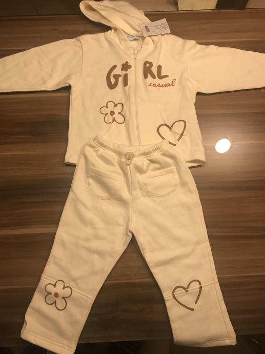 Prodam otroško trenirko za 3-4 leta (36-48 mesecev). Material: 60% bombaž in 40% poliester. Je NOVA in zelo lepa.