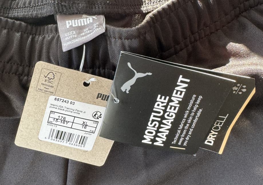 Prodam otroške trenirke hlače Puma Team Liga v črno-beli barvi, velikost 164.