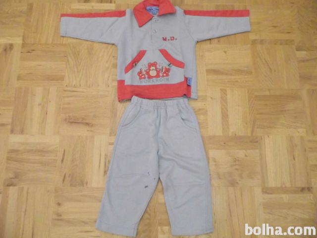 Prodam trenirko sestavljeno iz dveh delov, zgornje mikice in hlač, ki imajo par flekov, temu primerna simbolična cena. Trenirka je št.80