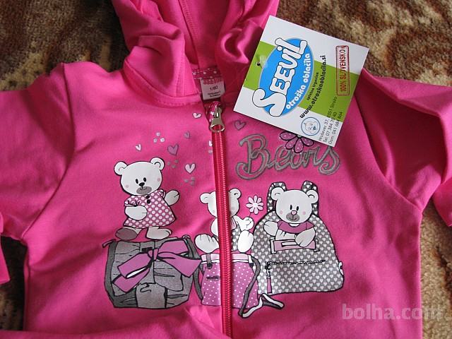 Prodam novo in izredno kvalitetno trenirko za punčko, št. 80. Cena nove trenirke je 28 eur (www.otroskaoblacila.si).