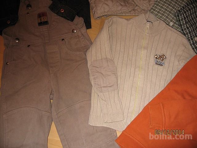 Prodam odlično ohranjena, kot nova, oblačila za fantka starega 3 leta: prešita tanjša bež jaknica, deftin hlače z oprsnikom,zelena žametna srajca, 2x karo flanela srajca, bež jopica z vezenino, oranžna majica s potiskom, zelena trenerka spodnji del, 2x zelena mikica. Vsa oblačila so barvno usklajena, kvalitetna in odlično ohranjena, vredna nakupa. Cena je 29,00 eur z navadno ptt ob predhodnem nakazilu na trr.
