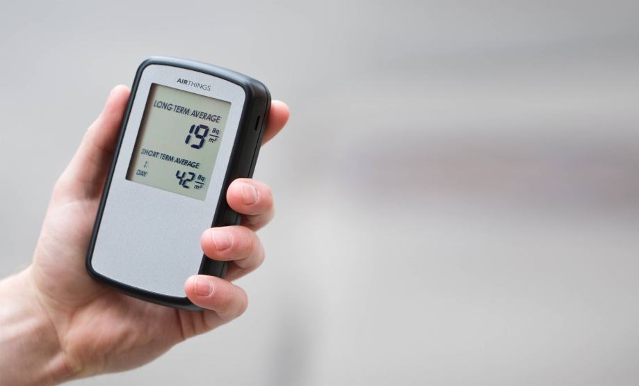 Z Airthings Corentium Home imate **digitalni detektor radona**, ki omogoča **takojšnje in dolgotrajno merjenje radioaktivnega plina** v prostoru.