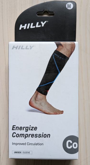 Novi in popolnoma nerabljeni Kompresijski tekaški nogavčki Hilly Energize Compression Sleeve velikosti M. Sem naročil 2 velikosti in zase obdržal velikost Large (187 cm, 75 kg).