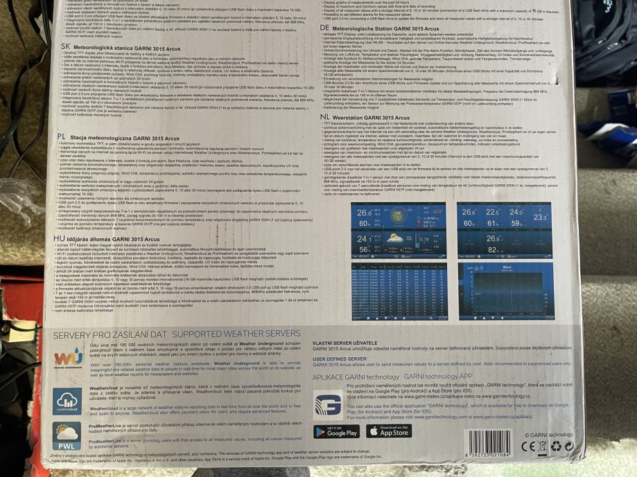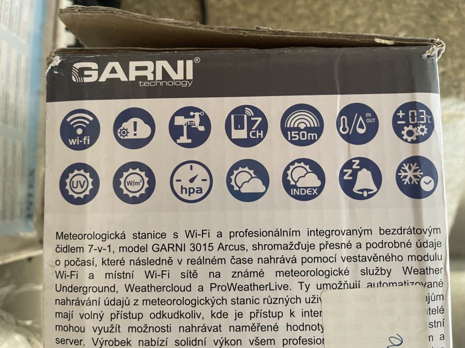 Vremenska postaja GARNI 3015 ARCUS wifi kupljen 4.5.2023 v garanciji. •