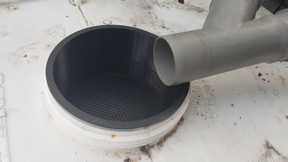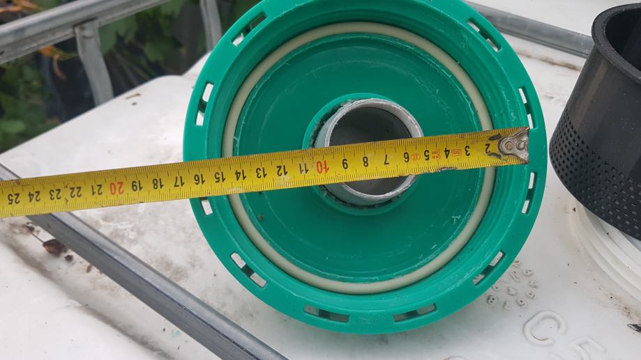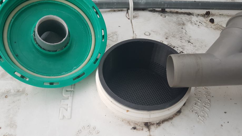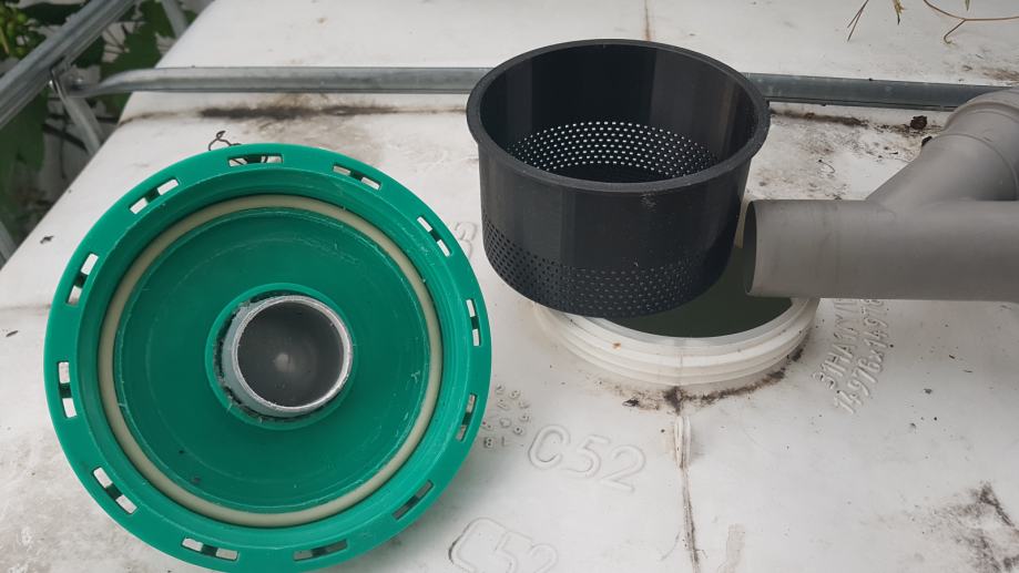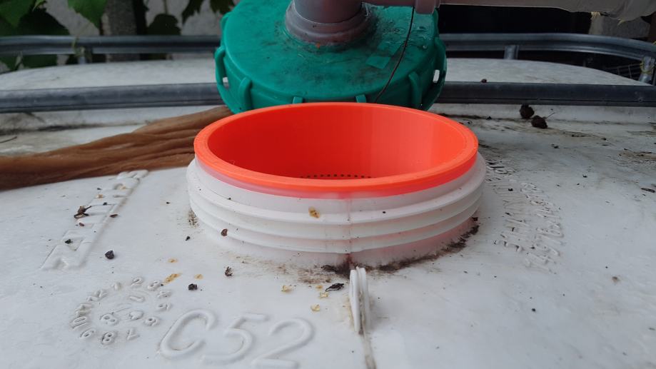 Vgradni filter za IBC kontejner primeren za vodo na vrtu. Vgradni PLA filter, dimenzij 140mm x 80mm ( možne tudi druge dimenzije ),omogoča perfektno mehansko filtracijo nečistoč, ki pritečejo po žlebovih v kontejner, zaradi luknjičastega sistema omogoča hiter pretok vode in obenem odstranjevanje oziroma zbiranje tudi zelo majhnih delcev umazanij. Filter enostavno očistimo tako, da ga potem ko smo odvili zgornji pokrov dotoka vode, dvignemo iz cisterne, stresemo umazanijo v smeti, speremo pod tekočo vodo, vstavimo nazaj v cisterno ter privijemo pokrov s tem pa je cisterna ponovno pripravljena.