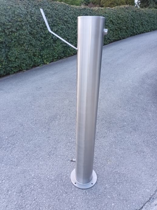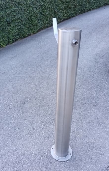 Vrtni stebriček za vodo, fi12 cm, višina 100 cm. Spodaj zadaj priklop za vrtno cev 1/2", zgoraj spredaj priklop za pipo 1/2". Dovod vode pod stebričkom. Izdelana iz kvalitetnega nerjavnega jekla inox 3 mm, TIG varjena. Možna dostava po pošti.
