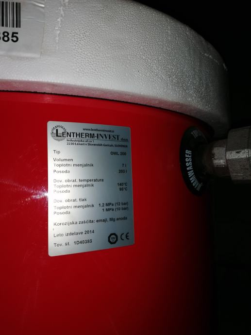 BOJLER prodam ogrevalnik sanitarne vode (bojler) znamke Lentherm OWL 200L rabljen 4 mesece.