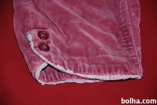 Prodam komplet zelo zelo lepih dekliških tolplih hlač velikost 74 - 77 cm za starost 6 - 9 oz. do 12 mesecev. Roza so deklarirane kot večje, čeprav so dejansko enake. Dolžina v razkoraku je 21 cm. Zelo prijetne na otip, z lepimi detajli.