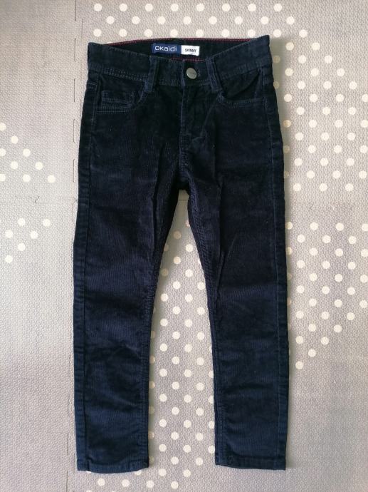 Prodam nikoli nošene žametne hlače Okaidi skinny v temno modri barvi, velikost 104.