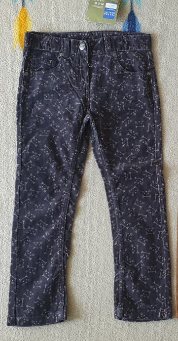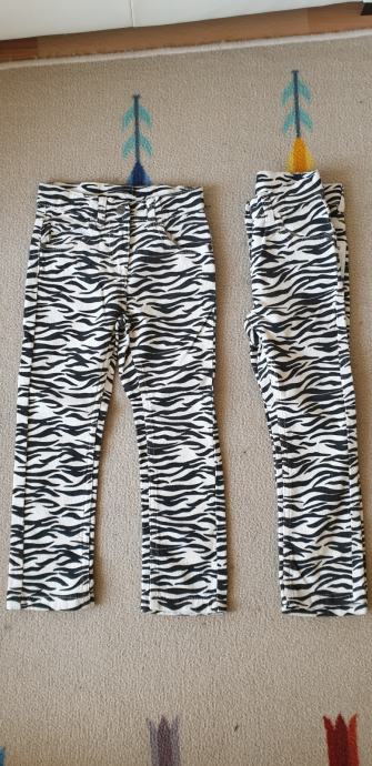 Nove žametne hlače 110/116 zebra vzorec, roza in z mucami, z regulacijo v pasu ter raven kroj....cena je 5,50€