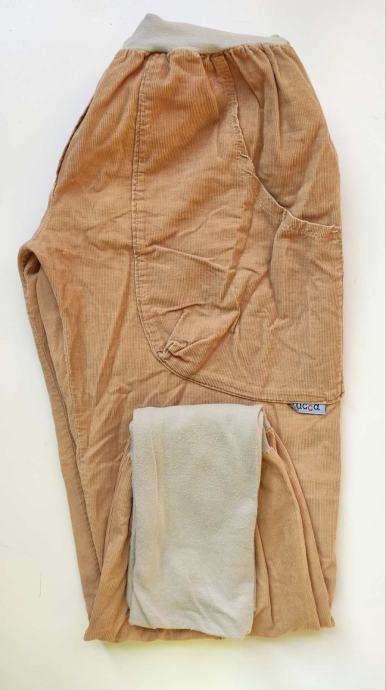 Hlače iz tankega in mehkega žameta, s patentom v pasu in sp. delu hlačnic. Butična in ročna izdelava, znamka Lucca. Primerno tako za deklice kot za dečke.