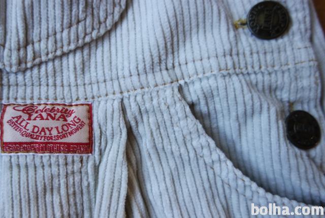 Tople žametne "old school" hlače na naramnice krem barve, z gumbi ob straneh.