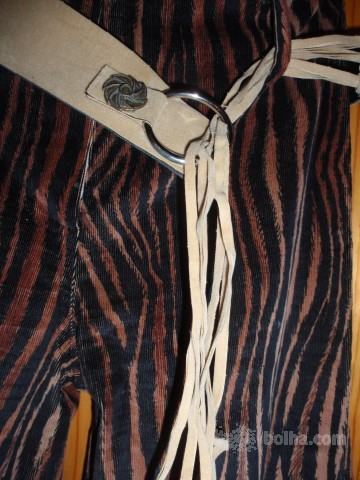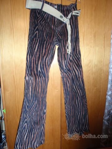Prodam atraktivne Ž hlače št. 40 z dekorativnim pasom. Hlače so nošene samo 1x.