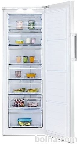 Opis:Zamrzovalna omara Beko RFNE290 E23W vas bo navdušila s svojo veliko prostornino 250 litrov, sedmimi predali, predelom za hitro zamrzovanje, antibakterijskimi tesnili vrat in tehnologijo No Frost, s pomočjo katere vam zamrzovalne omare zaradi nabiranja ledu nikdar ne bo potrebno odmrzovati. Zmogljivost zamrzovanja znaša 16 kg v 24 urah, ob izpadu električne energije pa bodo vaša živila varno shranjena še 18 ur.Tehnologija No FrostTehnologija No Frost preprečuje nastajanje in nabiranje ledu ter poskrbi, da vam zamrzovalnika ne bo potrebno odtajevati.LED osvetlitevModeli z LED osvetlitvijo zagotavljajo močnejšo in učinkovitejšo osvetlitev notranjosti hladilnika.Tehnične lastnosti:- Zaslon s prikazom temperature- Razred energijske učinkovitosti: A+- Prostornina zamrzovalnega dela: 250 l- Letna poraba el. energije: 207 kWh- Klimatski razred: SN-ST- Glasnost delovanja: 42 dB- NoFrost tehnologija- Zmogljivost zamrzovanja: 16kg/24h- Dimenzije: (ŠxVxG): 59,5 x 171,4 x 65 cm Več podatkov si oglejte na tej povezavi...
