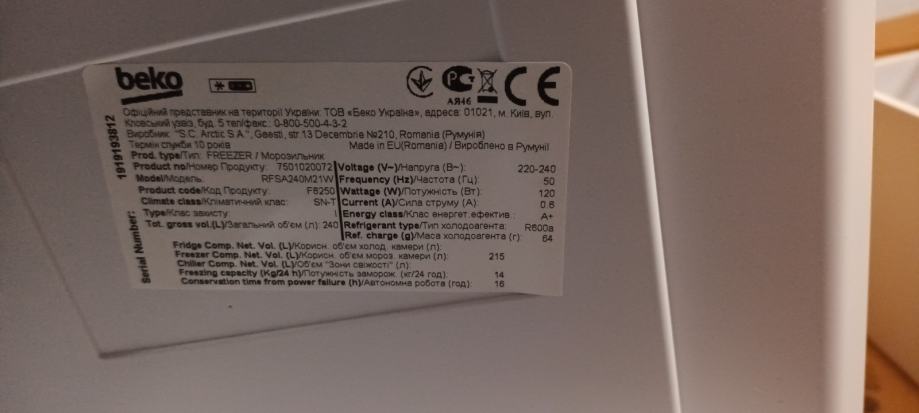 Antibakterijska tesnila vrat. V primeru izpada električne energije, bodo vaša živila ostala na varnem še 16 ur. Zmogljivost zamrzovanja (kg/24h): 14. Zmogljivost izdelave ledu (kg/24h): 1. Upravljanje: Mehansko. Ima predel za hitro zamrzovanje in pladenj za ledene kocke.