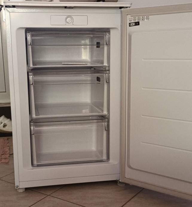 1 leto star zamrzovalnik / zmrzovalnik pultne višine, kot nov. Živila v primeru el.izpada varno ohranja 12h. Namesto zadnjih nogic ima 2 koleščka, kar zelo olajša premikanje aparata. Ročaj za odpiranje je skrit v okrovu vrat.