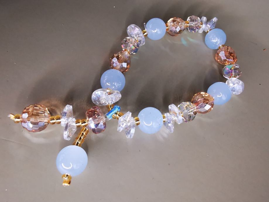 Prodajam svežo elegantno ročno izdelano svetlo modro zapestnico s kristalčki na elastiki.