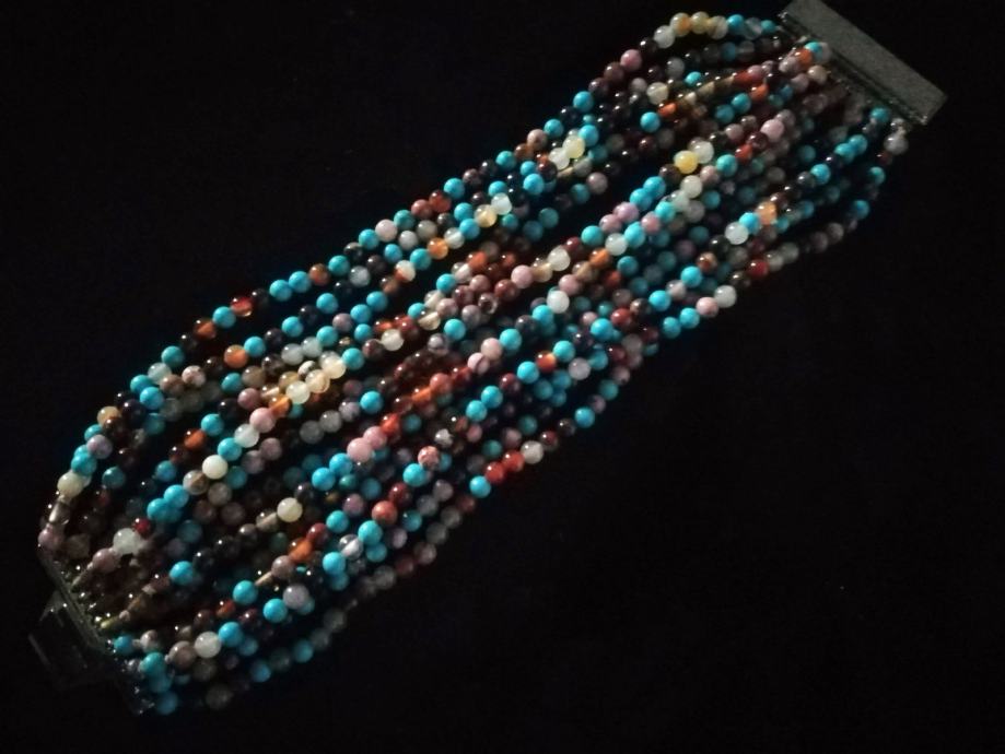 Zelo lepa vintage zapestnica za poletne dni, kot nova. Kamenčki so težki, ne vem pa, če so poldragi. Primerna za bolj drobno zapestje.