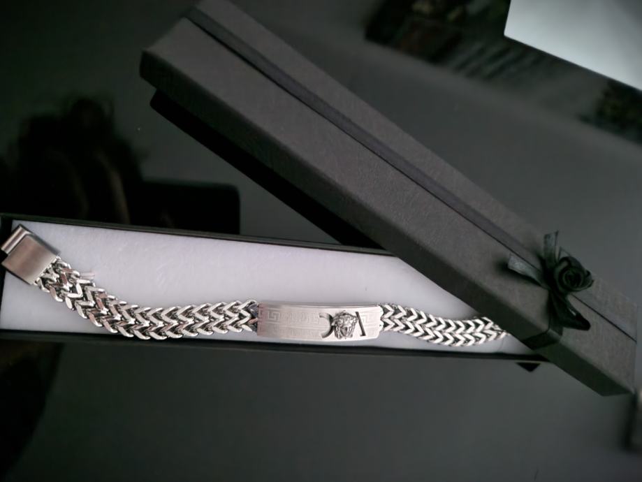 Prodam zelo lepo NOVO VERSACE zapestnico v srebrni barvi iz zelo kvalitetnega materiala, ki ne rjavi in ne bledi, nerjaveče ali kirurško jeklo. Zapestnica bo imela zagotovljen večen sijaj in lesk. Gre za zelo redko oziroma unikatno zapestnico na našem trgu. Dolžina zapestnice je 22 cm, širina 1 cm. Cena je samo 59 eur. Za nakup in prevzem me pokličite na: 031/871-740