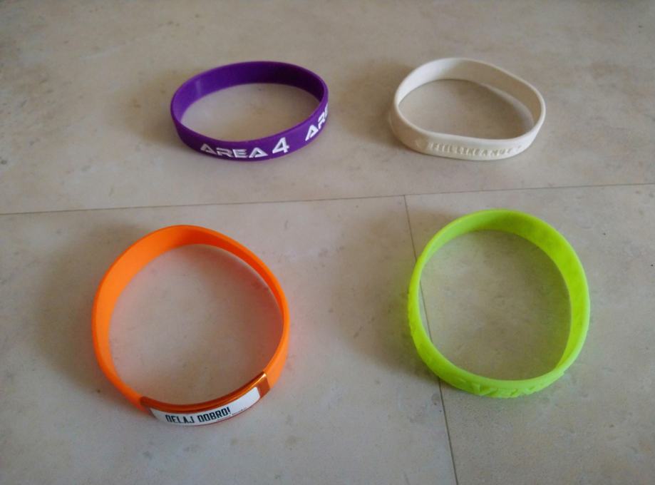 (slika11) Barvni obročki: Oranžna, zelena, vijola in bela. Cena posamezne zapestnice je 0,50 € + ppt.
