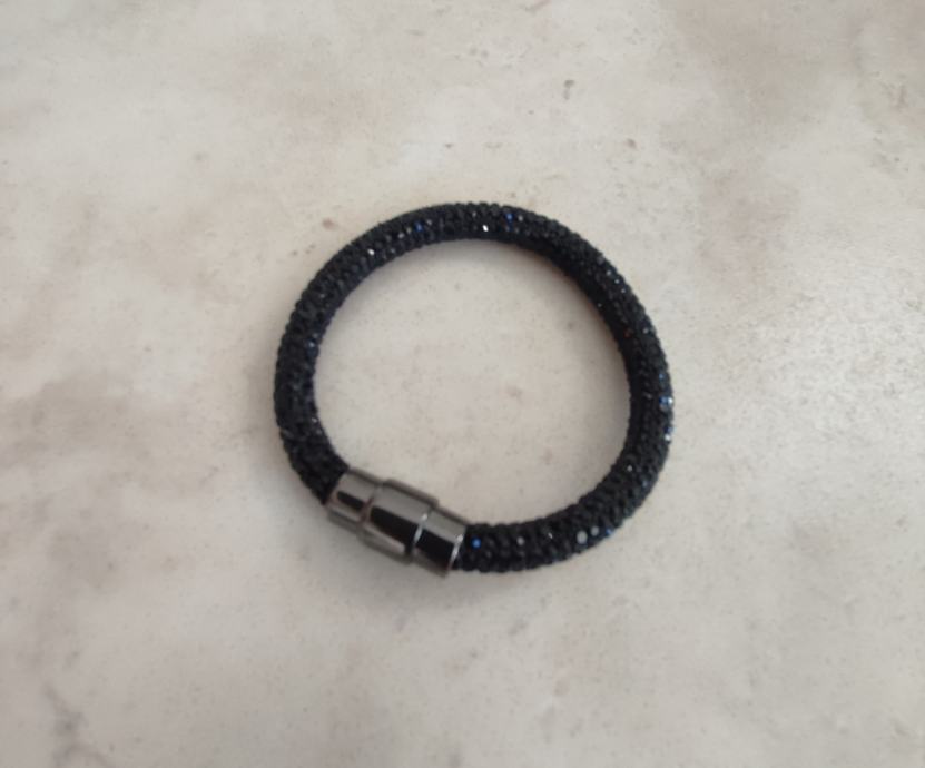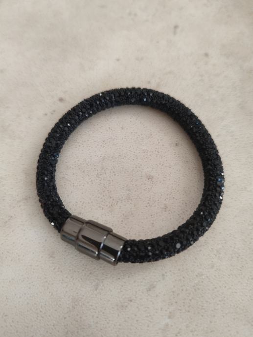 Manjša cevasta črna lesketajoča zapestnica na magnet in zatič. Dolžina 17 cm. Cena 4 € +ptt