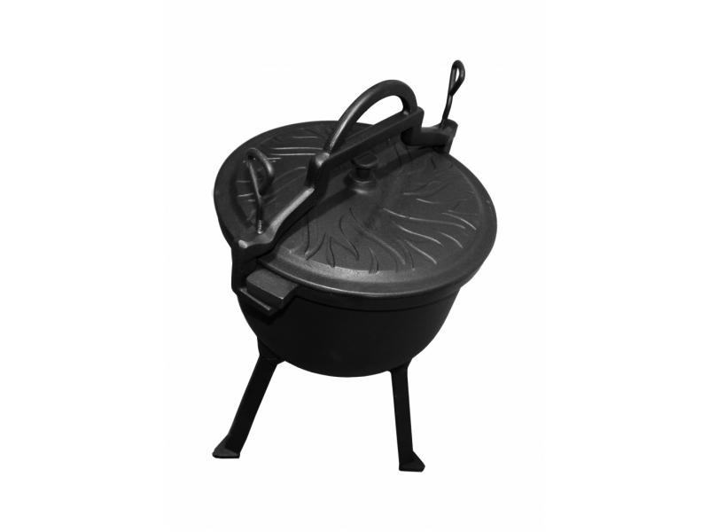 Vzdržljivost in odpornost na vremenske vplive: Litoželezni kotliček je izjemno trpežen in vzdržljiv, saj prenese visoke temperature in različne vremenske razmere, kar ga naredi idealnega za uporabo na prostem. Njegova robustna zasnova zagotavlja dolgo življenjsko dobo, tudi ob pogosti uporabi.