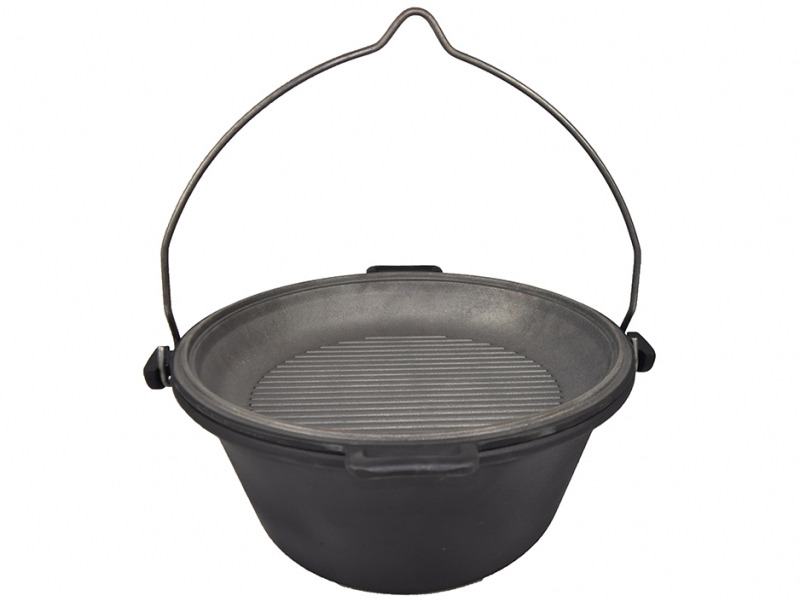 Madžarski kotel iz visokokakovostnega litoželeza, izdelan v Poljski, združuje tradicionalno obrtništvo in sodobno tehnologijo, kar zagotavlja izjemno vzdržljivost in optimalno delovanje tudi pod zahtevnimi razmerami. S svojo zasnovo 2-v-1, kjer je kotel povezan s ponvijo, omogoča večnamensko uporabo in primeren je za pripravo različnih jedi, od počasnega kuhanja do hitrega popekanja.