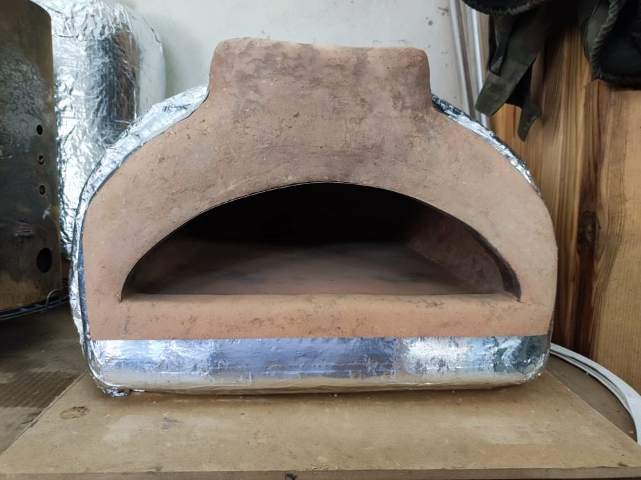 Preprosta pica peč domače izdelave iz najboljših materialov. Združuje visokotemperaturno peko, akumolacijo toplote in izjemno varčnost zaradi svoje majhnosti. Teža približno 20 kg. Dno peči šamotna plošča 40x30x3 cm. Keramična izolacija v jedru in od zunaj kamena volna z alu prevleko.