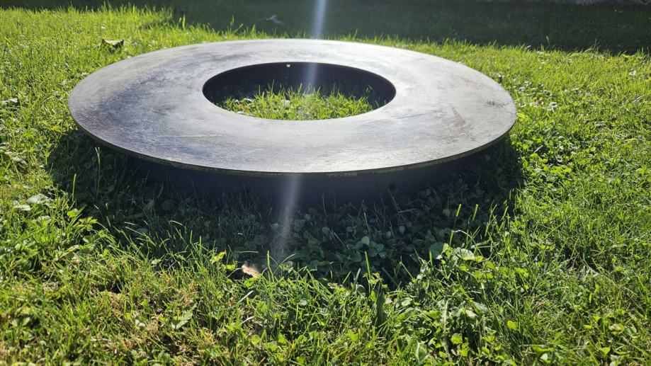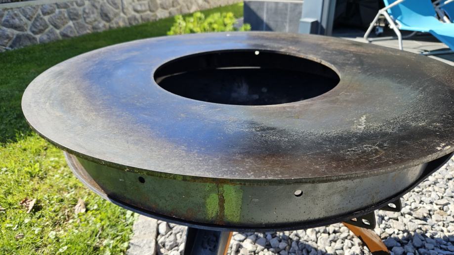 Plošča je iz kotlovske pločevine 8mm in premera 85 cm, ki je privarjena na obroču s premerom 75cm.