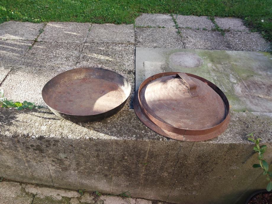 Prodam kovan sač, s podstavkom in lopatko - cena 30 EUR, bakreni kotliček s stojalom - 70 EUR, litoželezni kotliček s stojalom 70 EUR.