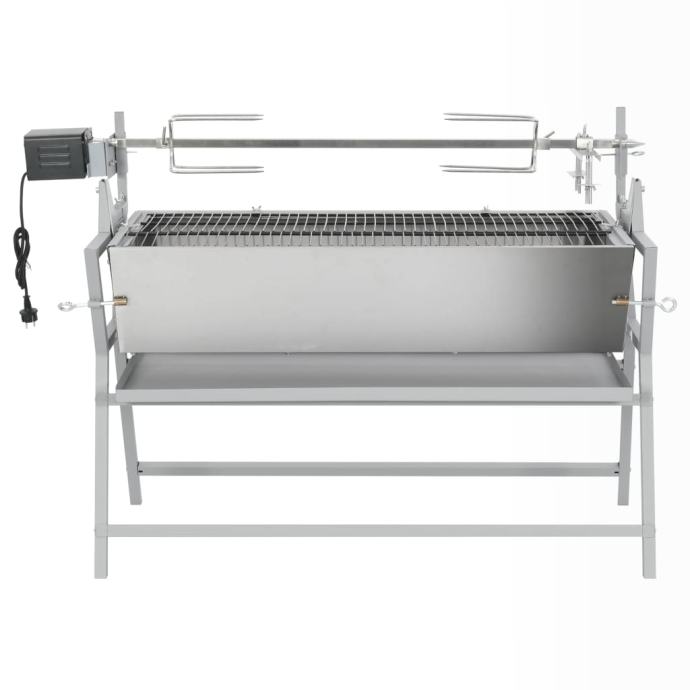 Ta kombinacija žara in vrtljivega ražnja bo kot nalašč za pečenje mesa na tradicionalen način. Idealen je za peko velikih kosov mesa, reber, piščanca in druge hrane! Nabodala ražnja so nastavljiva po dolžini, da se bolje prilegajo mesu. Višina nabodala je prav tako nastavljiva. Zahvaljujoč antioksidacijskim železnim zatičem za meso je raženj enostaven za čiščenje. Zasnova žara zagotavlja odvajanje toplote z manj dima in škropljenja. Ponev za kapljanje je odstranlljiva, zato jo boste zlahka očistili. Paket vsebuje električni motor za obračanje ražnja in namestitveno opremo za enostavno sestavo.