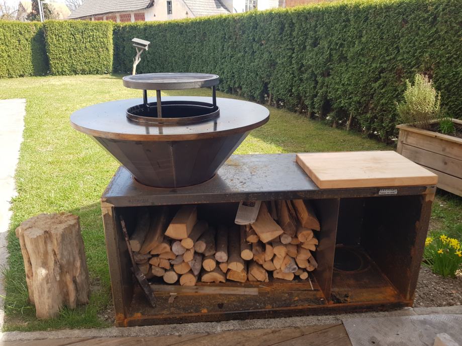Po naročilu izdelam vrtni žar, dimenzije podnožja 1500x700x700 mm, kurišče s ploščo fi 900mm, višina 300 mm. Žar je primeren za peko vse vrste mesa, rib, zelenjave in drugo. Po želji lahko izdelam tudi žar drugačnih dimenzij.