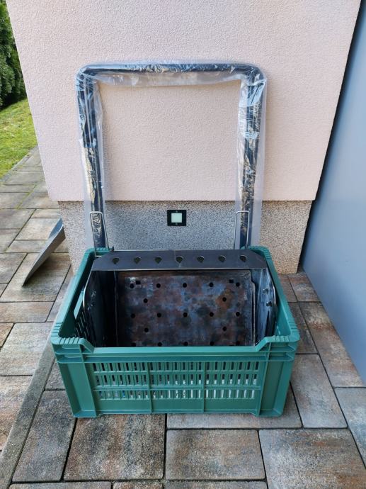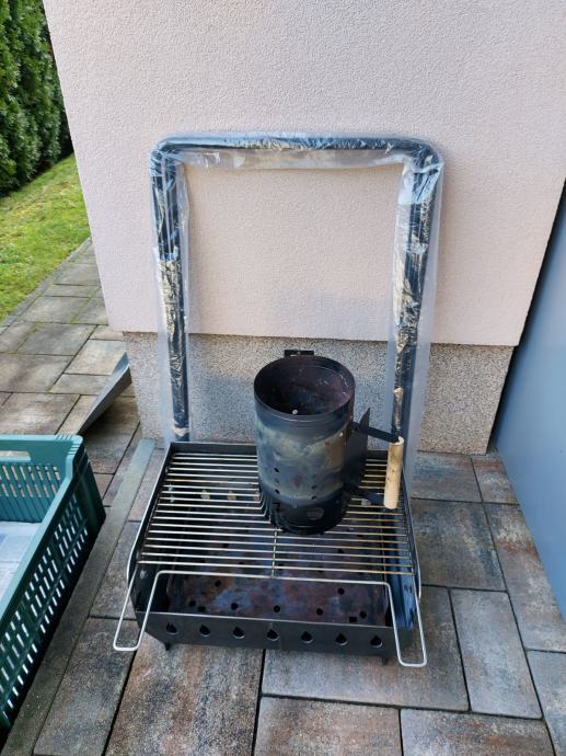 Poleg žara dodam še kovinske nogice, robusten PVC zabojnik za prenos žara in lijak za prižiganje oglja.