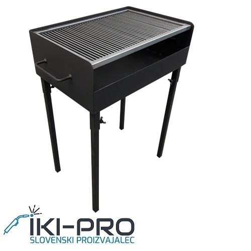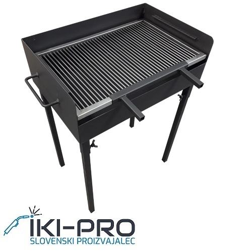 Na straneh ima tudi ročaje za pomoč pri nošnji. Višini med kuriščem in mrežo skrbno izmerjeni za optimalno temperaturo pečenja. Profesionalna mreža.
