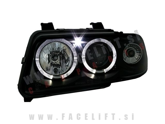 Žarometi z Angel Eyes obročki in lečo. Žarometi so novi, z garancijo. V kompletu prejmete par, levi in desni žaromet.