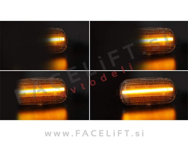Dinamični bočni LED smerniki, DTS (Dynamic Turn Signals). Smerniki so novi, z garancijo. V kompletu prejmete par.