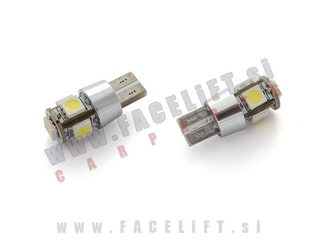 LED žarnice T10 5x SMD (5050) z vgrajenimi upori CAN-BUS, ki preprečujejo javljanje napake računalnika po vgradnji v novejša vozila. Žarnice so nove, zapakirane, z garancijo. V kompletu prejmete dva kosa.