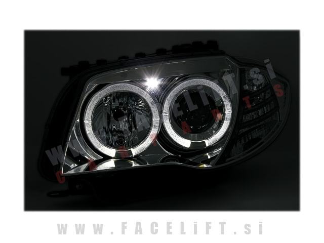Žarometi z Angel Eyes obročki in lečo. Žarometi so novi, z garancijo. V kompletu prejmete par, levi in desni žaromet.
